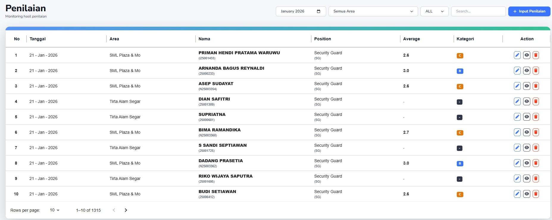 Sudah berapa orang yang dinilai dibanding total Security di area tersebut