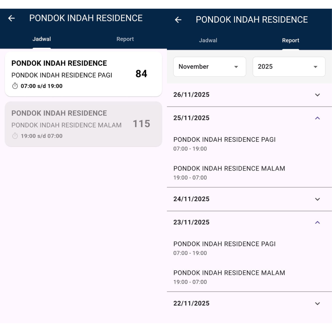 Saat membuka menu Report, Anda dapat melihat hasil patroli yang sudah dilakukan.
