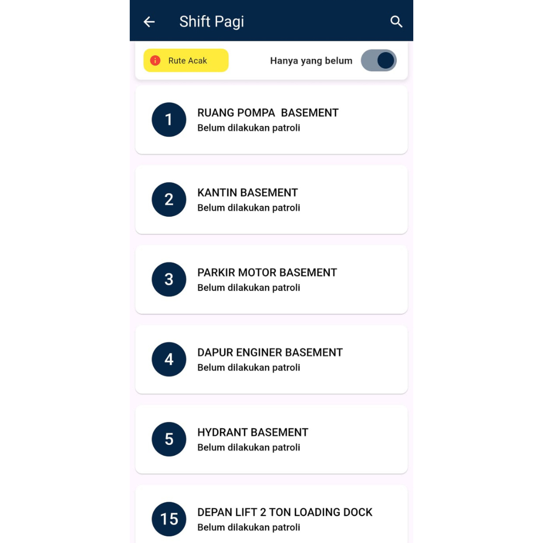 - Filter On/Off → Untuk menampilkan titik yang belum di-patroli atau sudah selesai.