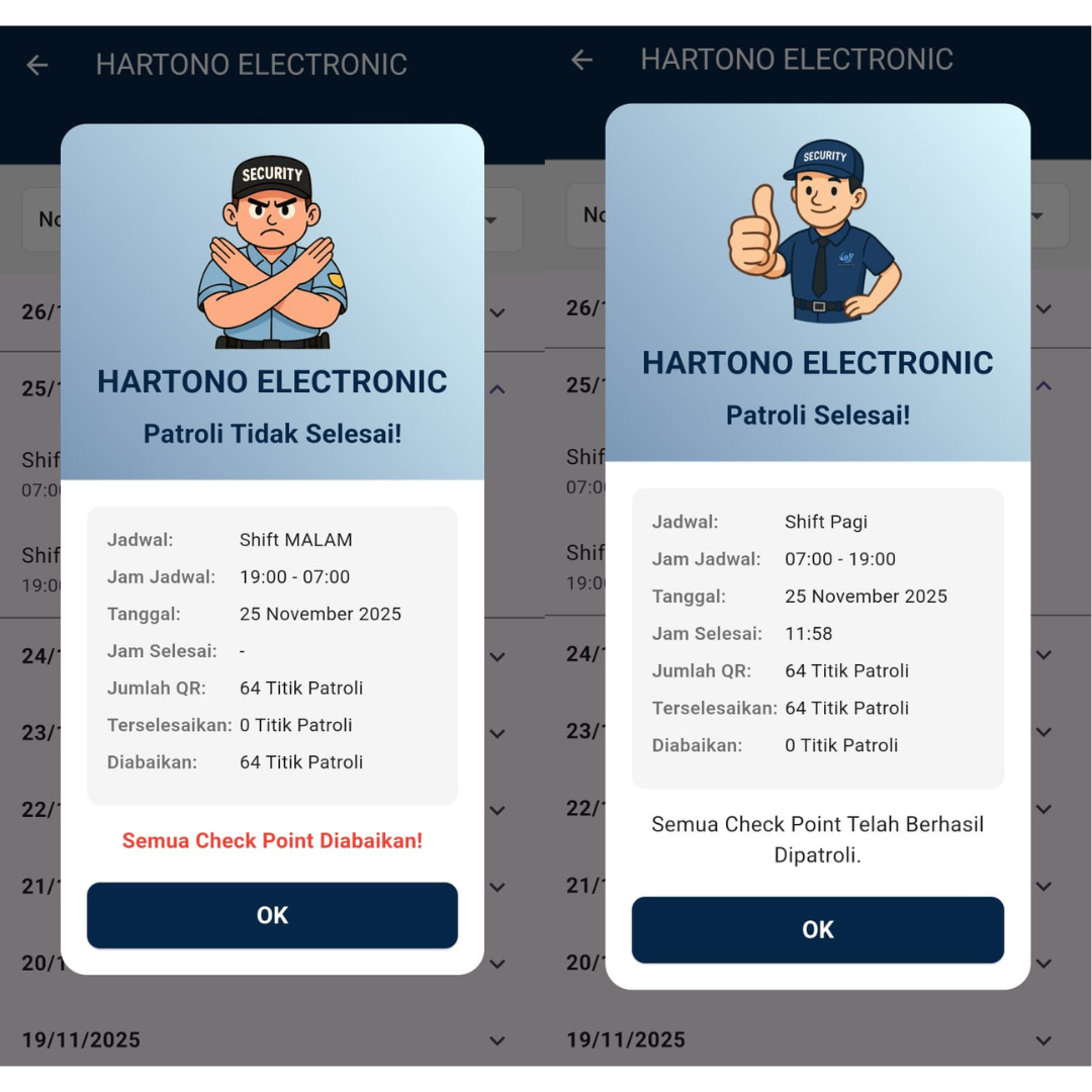 - Keterangan: “Semua Check Point Telah Berhasil Dipatroli.”